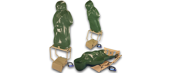 Then we found that all off-the-shelf targets had just a simple 90-degree rotation from standing to the dropped position. This results in two problems: The target requires a lot of space behind it to land in and the center of gravity shifts making it less stable when mounted on the TRACS Robot. Our patent-pending approach is to pivot the target about the waistline forward as that pivot point drops and rotates rearward. This motion maintains center of gravity while reducing clearance requirements. An added benefit is a more realistic body collapse. Only in Hollywood do bad guys fly backward when they are shot.